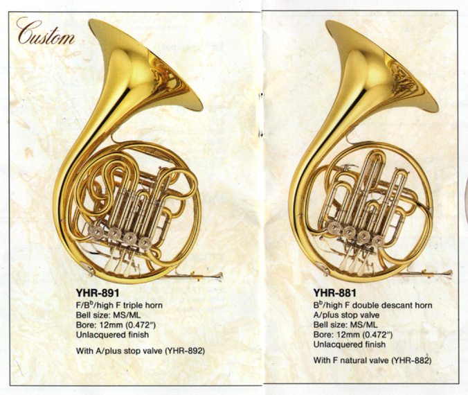 Yamaha post-1990 horn page(-s) from a general brass catalogue