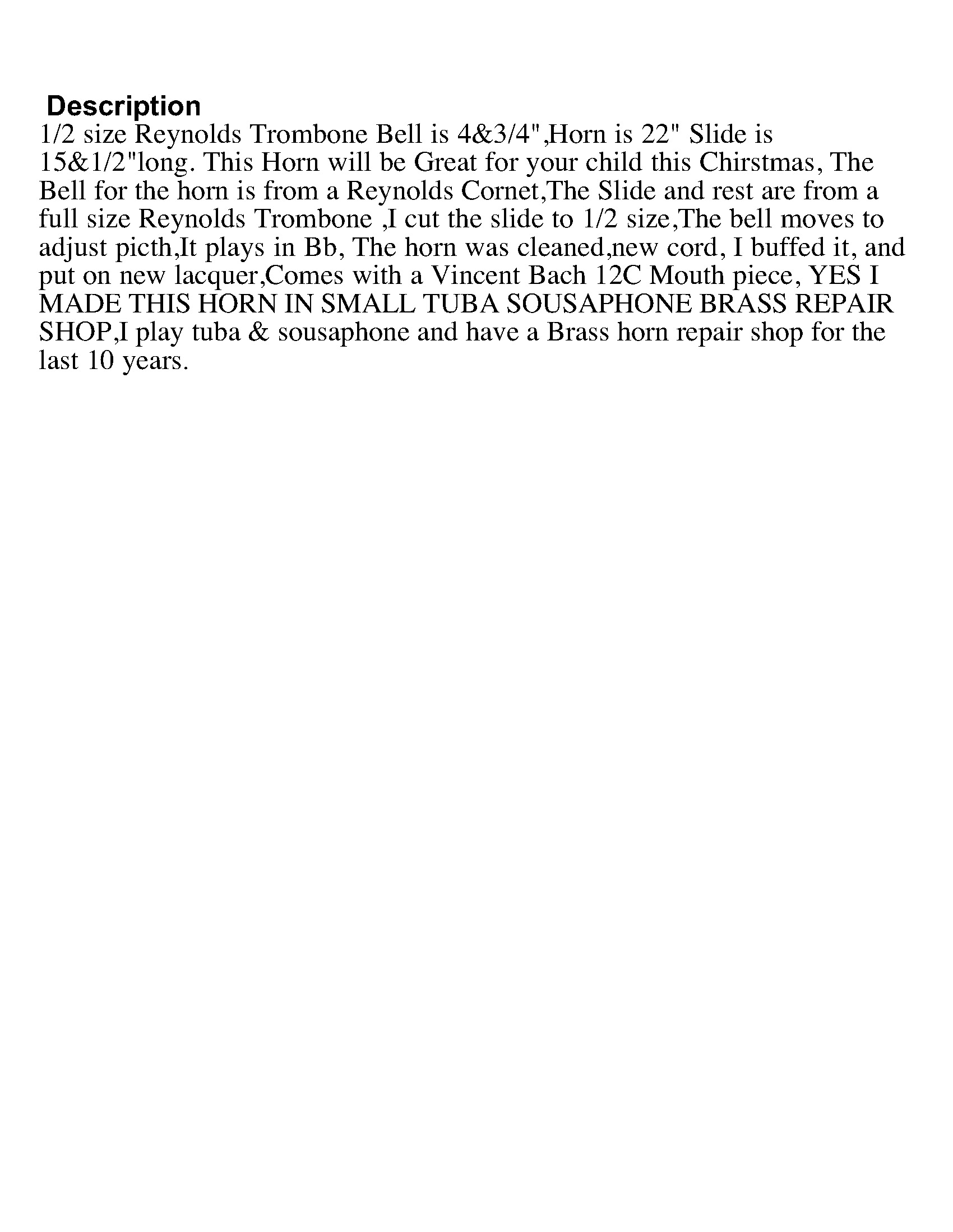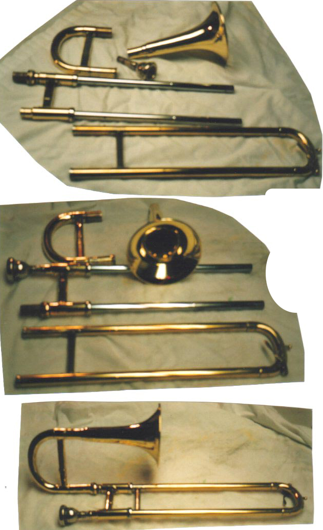 Soprano Bb slide trombone made of Reynolds’ cornet and tenor trombone parts by Harv’s Happy Horns