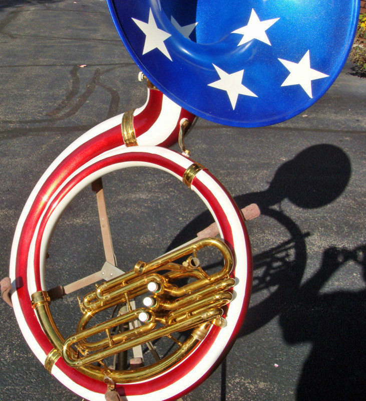 King BBb fiber sousaphone painted in Stars & Stripes