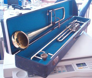 Finke narrow bore and narrow flare Bb 3RV valve trombone allegedly intended for the performance of baroque music