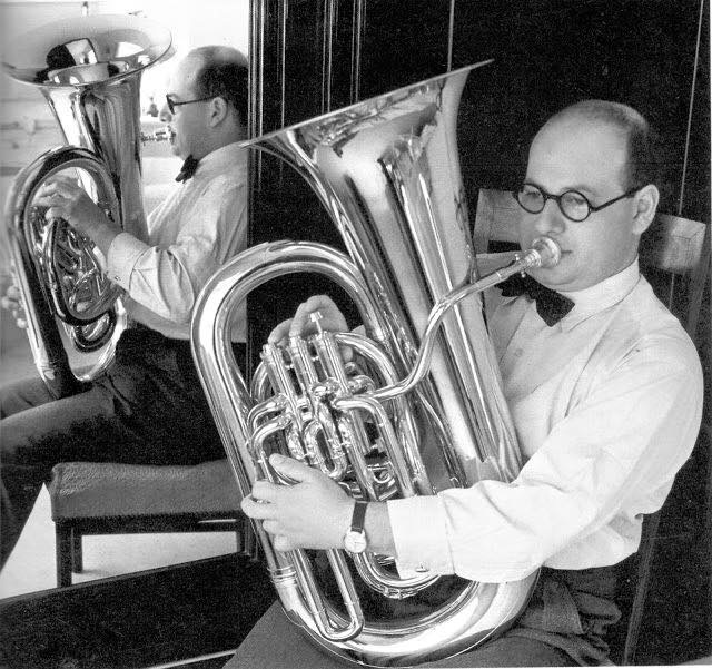 1. Gerard Hoffnung with his Besson compensating F-tuba