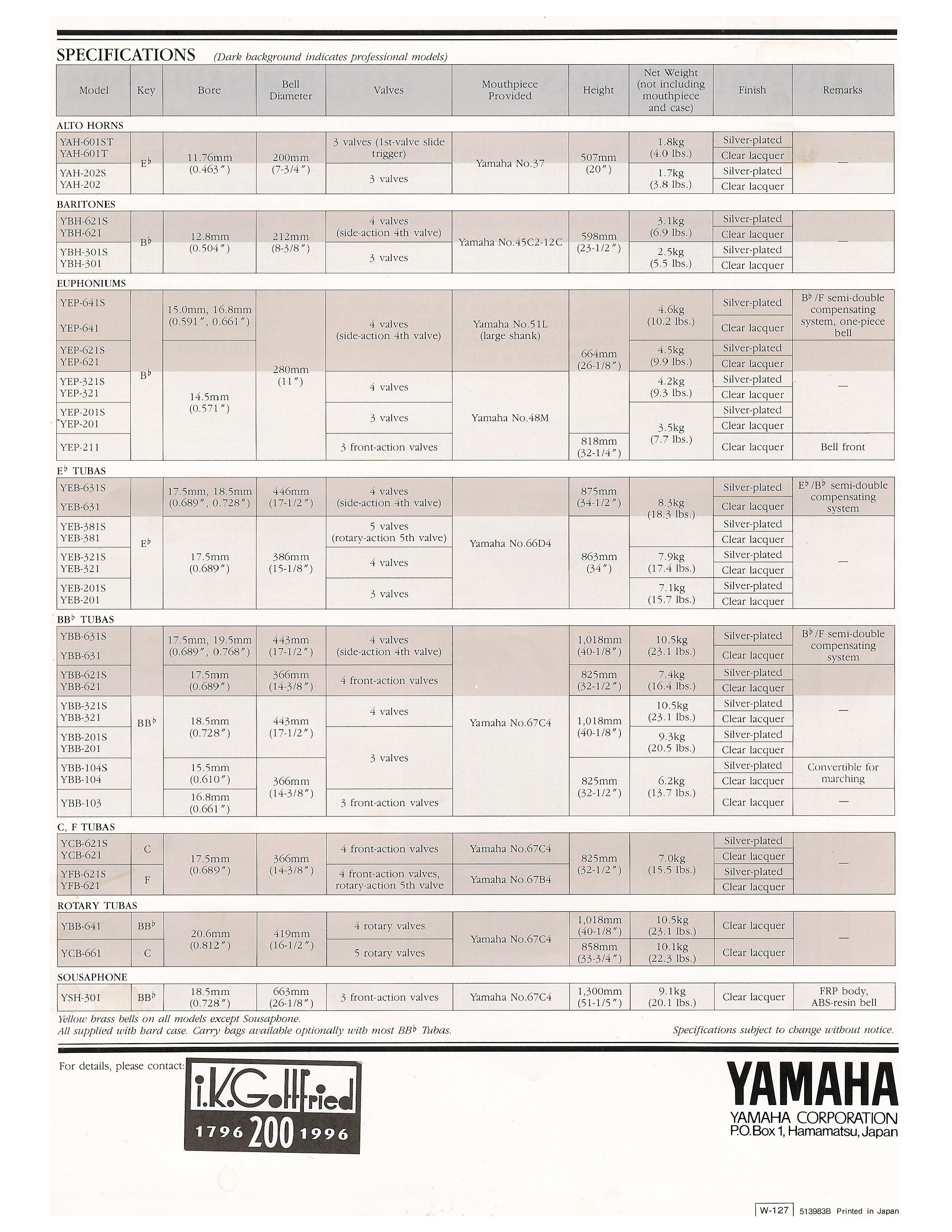 Scans of a circa 1994 Yamaha low brass catalogue