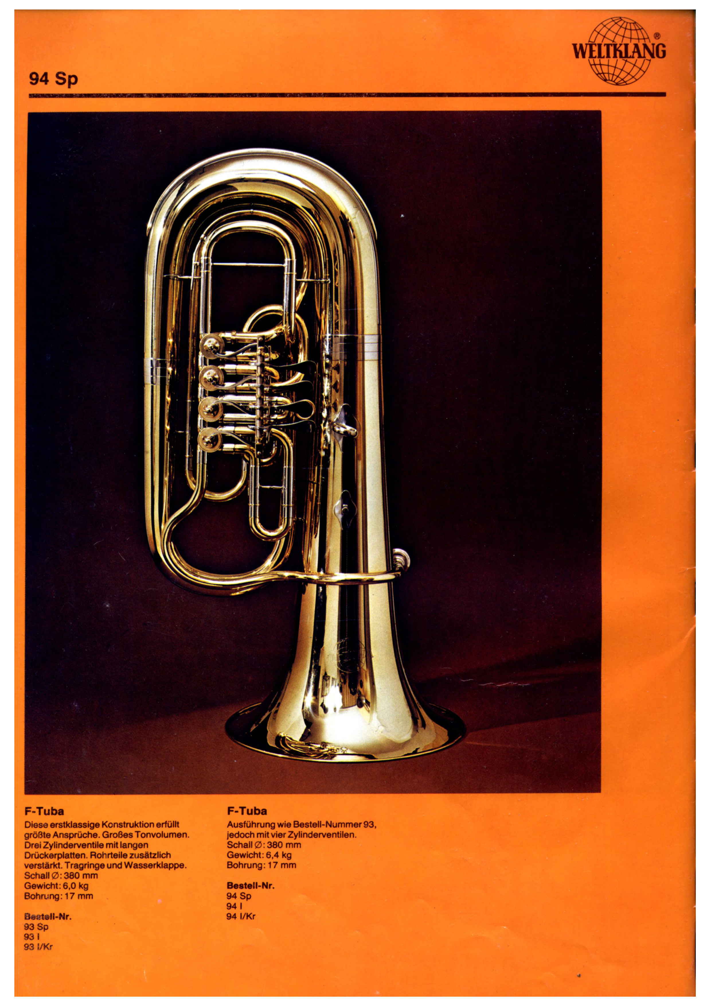 Weltklang (the B&S second line) rotary tubas in F, Eb, and BBb from a 1985 catalogue