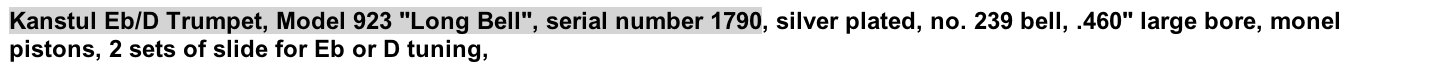 Kanstul 923 Eb-D trumpet long bell #1790