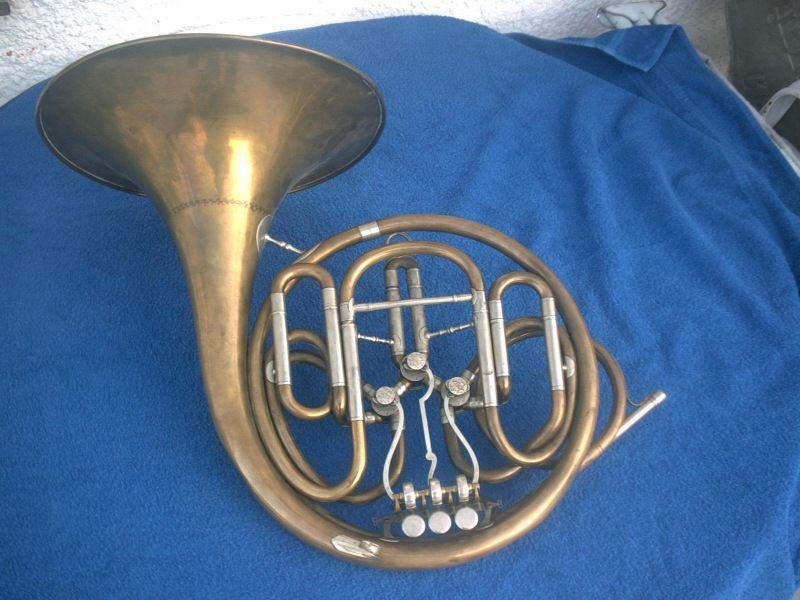 A. H. Rott of Praha single French horn in F with a special valve and slide arrangement