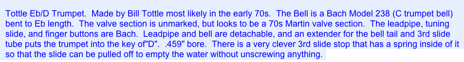 1973 Bill Tottle Eb&D trumpet 3P out of Bach and other parts
