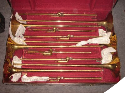 Robert Schopper Hoflieferant - Leipzig 6 Aida trumpets in B and Ab (R. Schopper - Schüler von F. A. Heckel - Dresden)