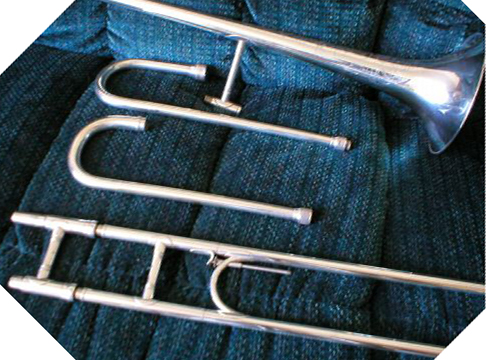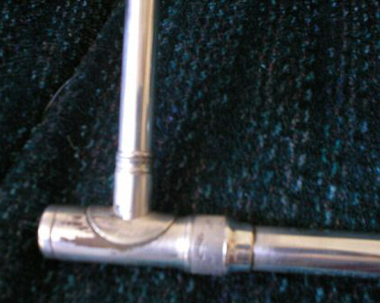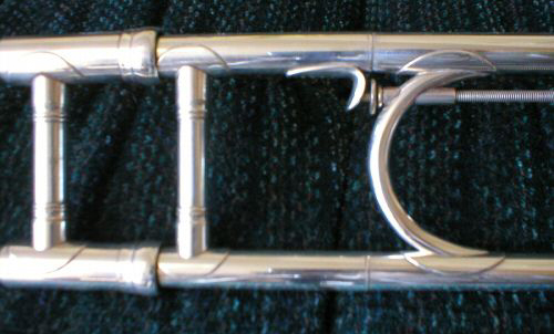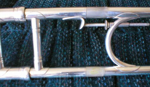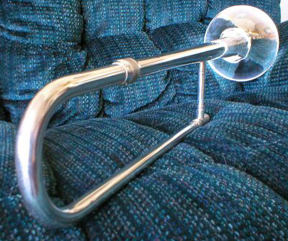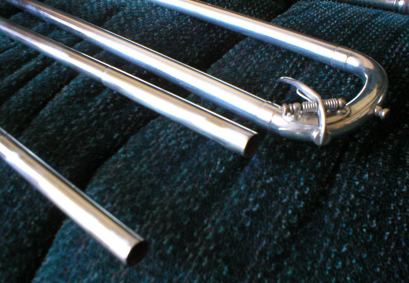 1929 F. E. Olds trombone with tuning mechanism in slide and two goosenecks for high and low pitches respectively