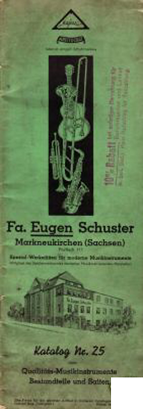 1. The frontpage of a pre-WWII Katalog Nr. 25 der Firma Eugen Schuster of Markneukirchen